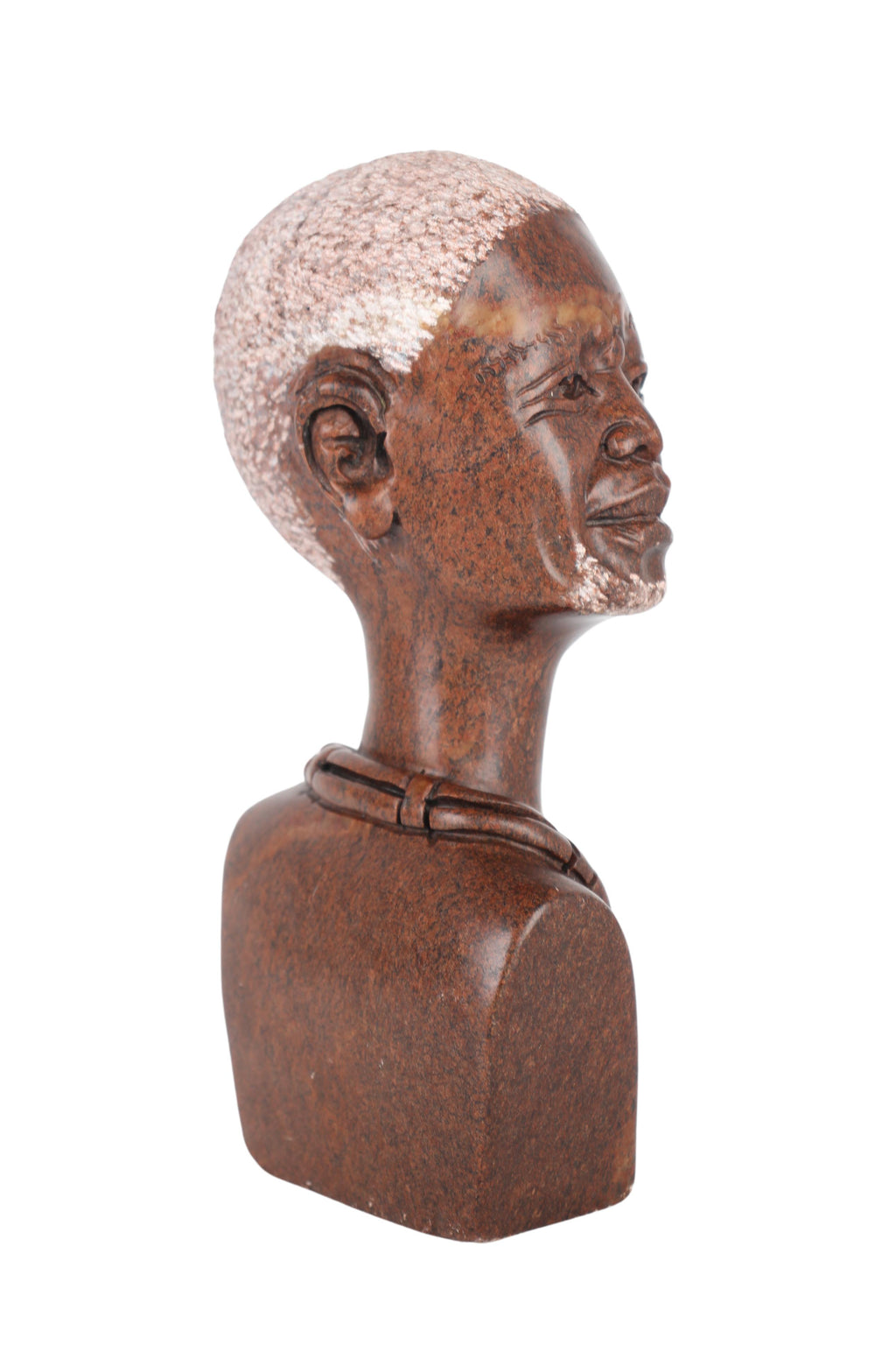 Shona Tribe Fruit Serpentine Bust – This Fruit Serpentine stone bust sculpture is hand crafted by a Zimbabwean Shona artist. The bust is polished and oiled, and it is set in the natural color of the stone. Zimbabwean artists are well-known for their stone carvings and are among the most skilled carvers in the world. For nearly a thousand years, the Shona have been hand sculpting stone into works of art. Although the craft is ancient, the style has evolved over time, and the sculptures created today are both beautiful and elegant. The contemporary yet timeless shape of these sculptures adds opulence to the home and complements any décor.