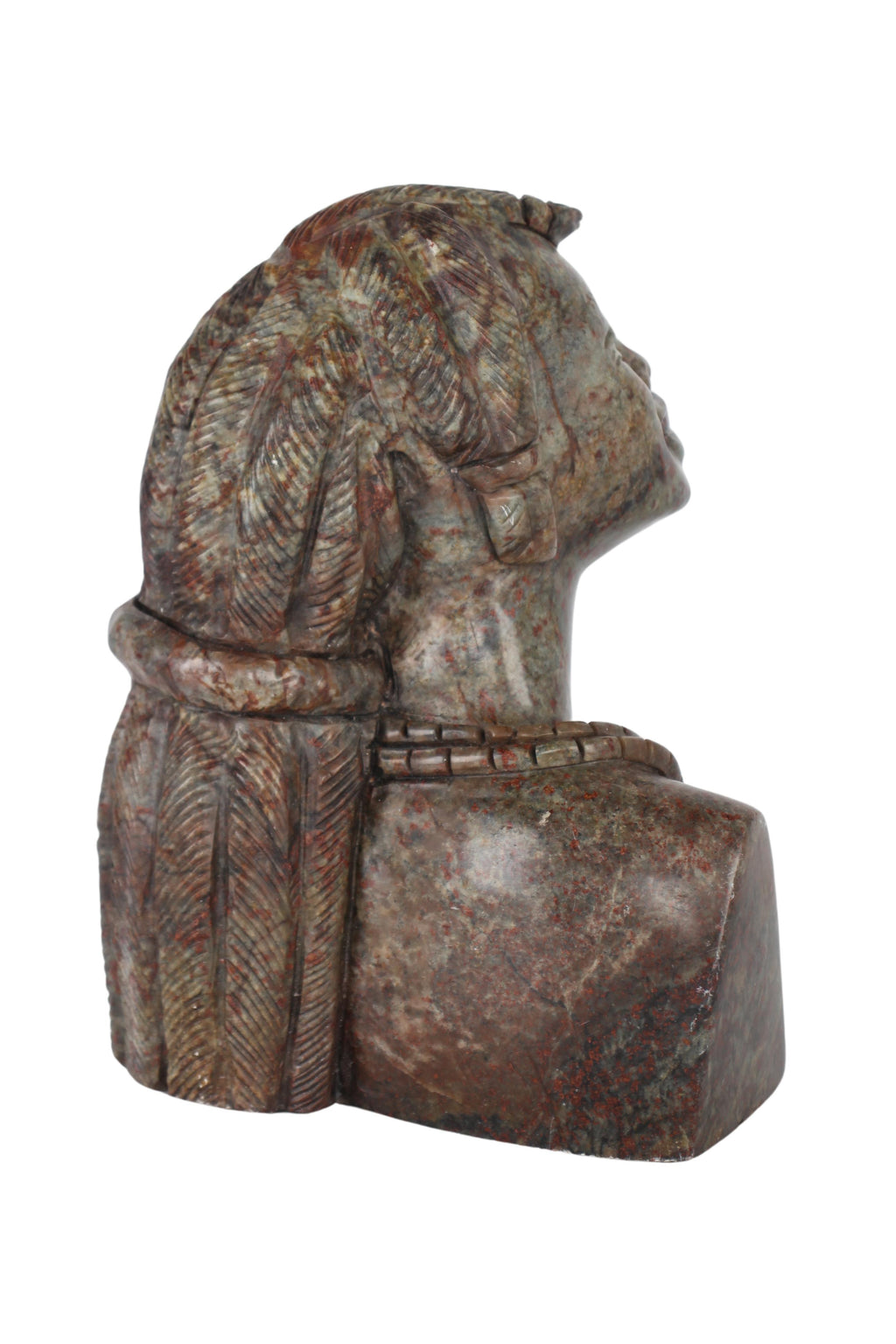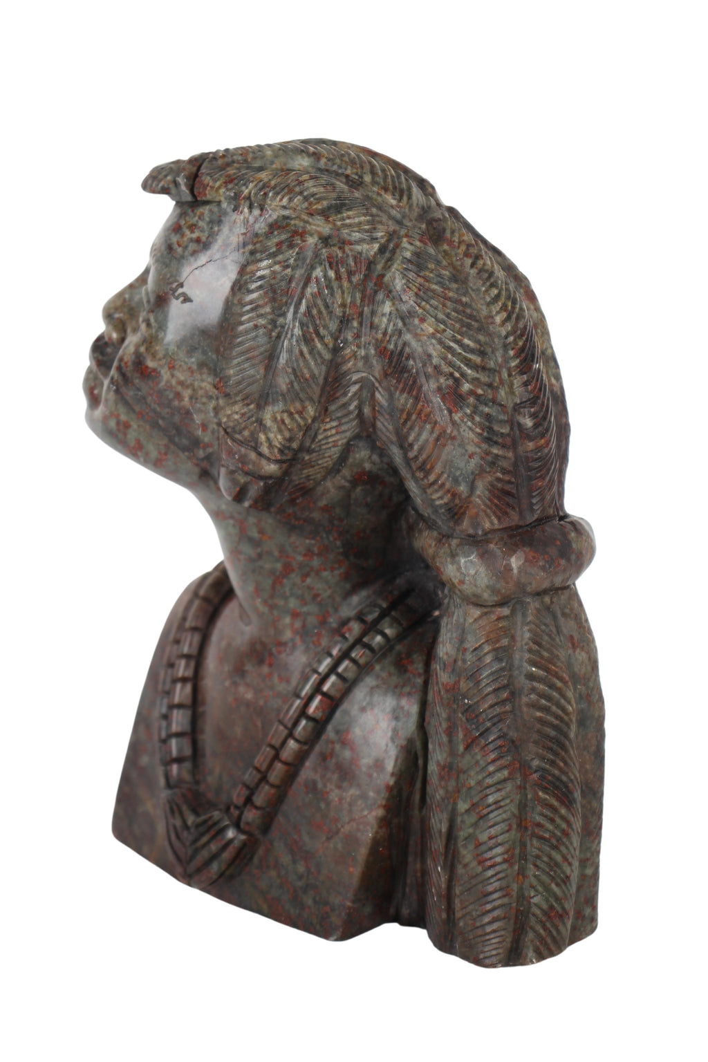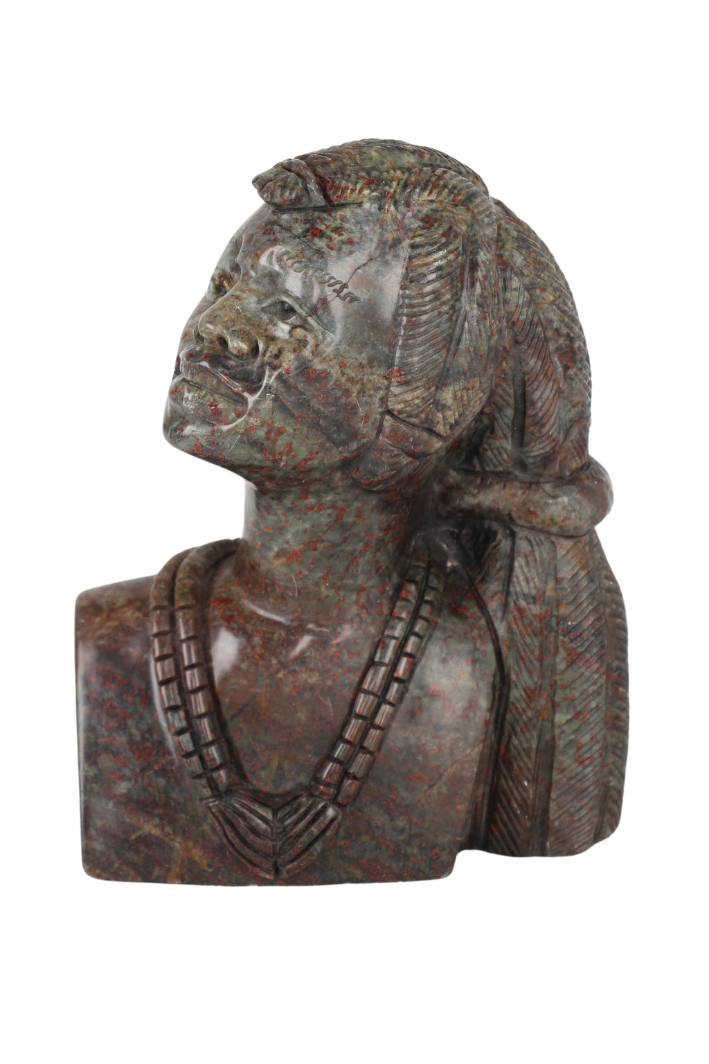 Shona Tribe Fruit Serpentine Bust – This Fruit Serpentine stone bust sculpture is hand crafted by a Zimbabwean Shona artist. The bust is polished and oiled, and it is set in the natural color of the stone. Zimbabwean artists are well-known for their stone carvings and are among the most skilled carvers in the world. For nearly a thousand years, the Shona have been hand sculpting stone into works of art. Although the craft is ancient, the style has evolved over time, and the sculptures created today are both beautiful and elegant. The contemporary yet timeless shape of these sculptures adds opulence to the home and complements any décor.