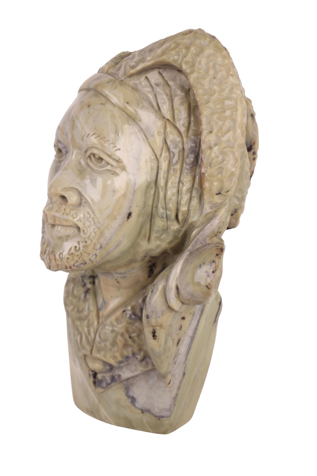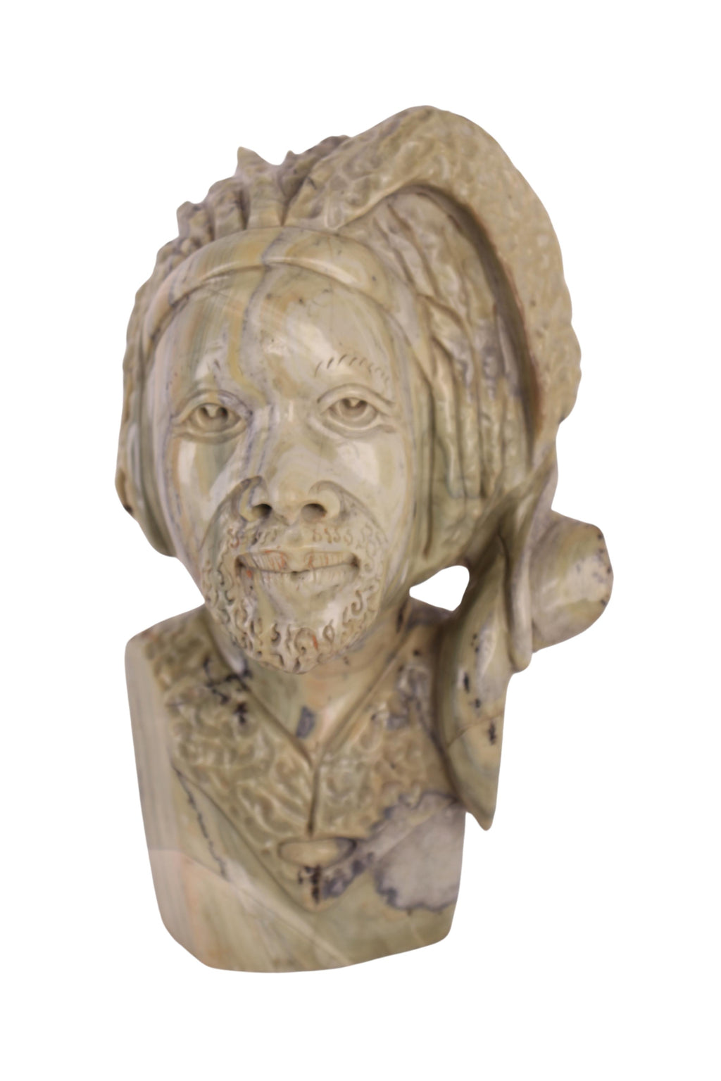 Shona Tribe Butter Jade Bust – A Shona artist sculpted this butter jade bust into a unique stone sculpture. The sculpture has been polished to a flawless shine and kept in its original butter jade color. Zimbabwe is well-known for its stone sculpture all around the world. This expressive genre of art has exploded in popularity since 1980. Since it was first introduced in 1956 by Frank McEwen, then-Director of the National Gallery of Rhodesia, a lot of development has been accomplished. Despite the country's hardships, artistically gifted young artists have perfected the skill while simultaneously supporting their families by playing with stone and creating masterpieces.