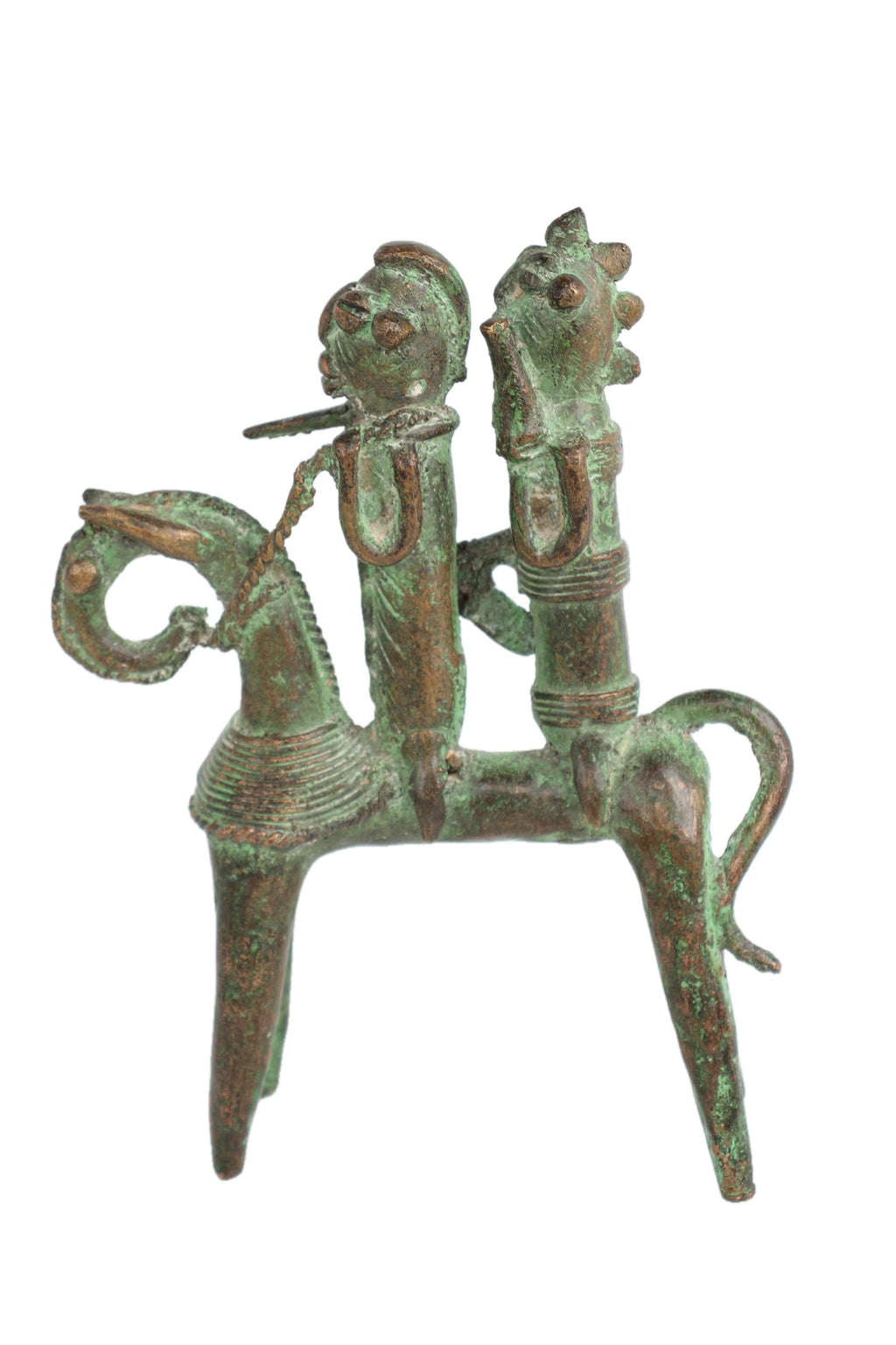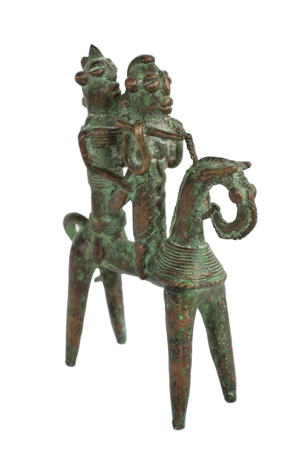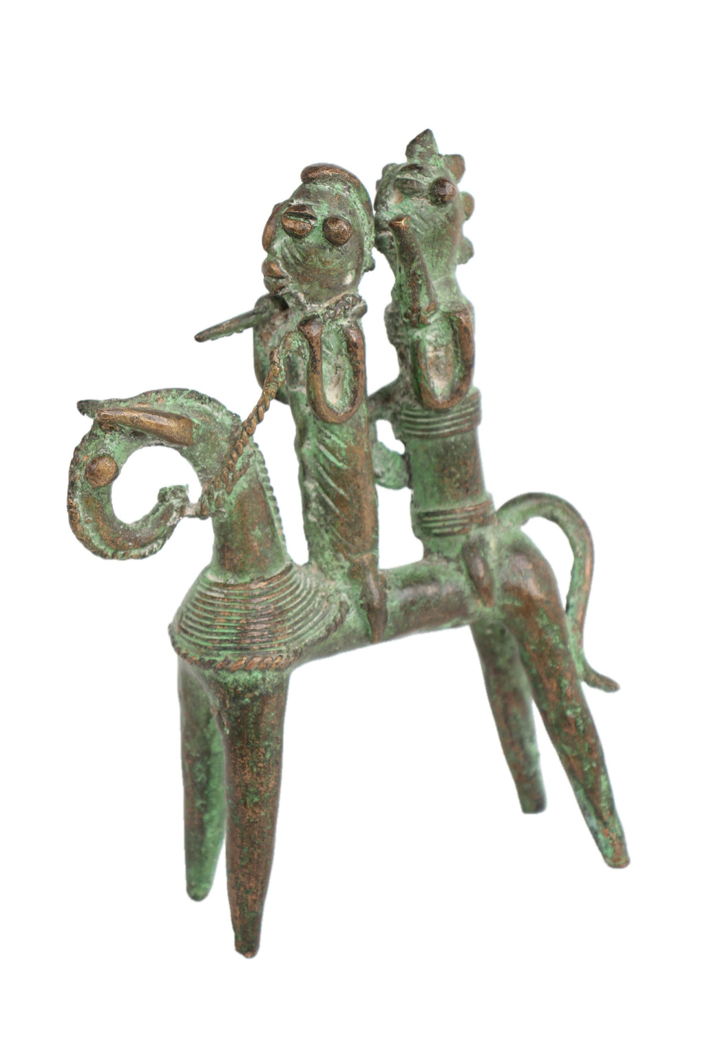 Sao/Kotoko Tribe Bronze Horsemen – The Kotoko people of Chad sculpted these bronze sculptures. Horseman-shaped talismans, according to the Kotoko have the potential to placate spirits that cause soul weakness, melancholy, dread, estrangement, or numerous diseases. These sculptures often feature horses with riders, usually the king, who is accompanied by men with shields, swords, and trumpets to signal the king's coming.