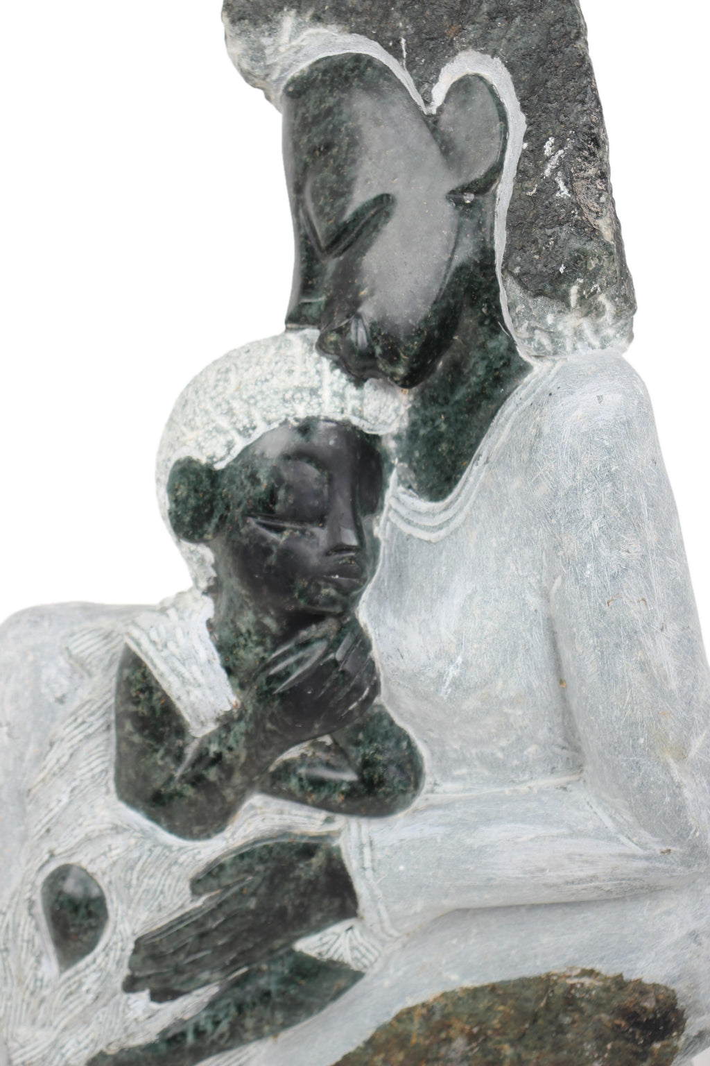 Shona Tribe Opal Stone Mother and Child – A Shona sculptor hand crafted this beautiful sculpture of mother and child in opal stone. Zimbabwean artists are well-known for their stone carvings, and they are among the world's most skilled carvers. For nearly a thousand years, the Shona have been hand sculpting stone into works of art. Although the craft is ancient, the style has evolved over time, and the sculptures created today are both beautiful and elegant. The contemporary yet timeless shape of these sculptures adds opulence to the home and complements any decor.
