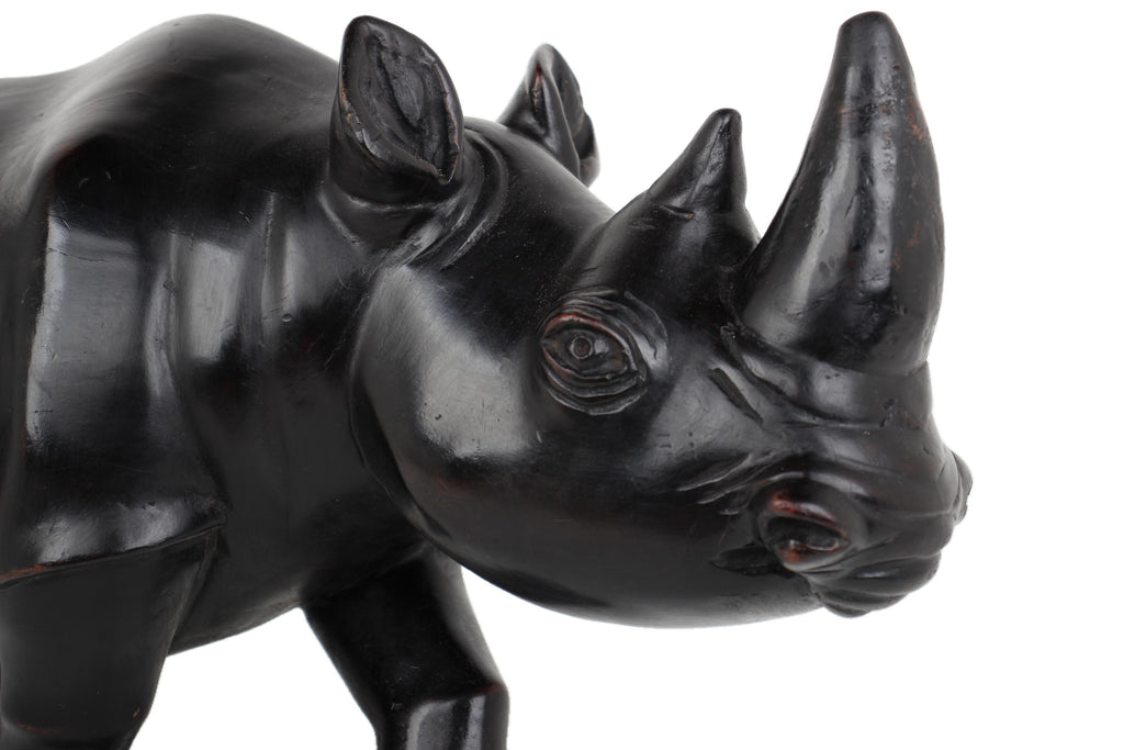 Chichewa Tribe Wooden Rhino – Malawi is known for its rich artistic traditions, including the creation of wooden sculptures. Malawian wooden animal sculptures are typically carved from various types of wood, such as ebony, mahogany, or jacaranda. Skilled artisans use traditional hand tools to carve the wood into the desired shape, paying attention to detail and capturing animals, such as elephants and other wild animals. The sculptures may showcase the natural beauty of the wood, with a smooth finish that highlights the grain and texture of the material. Some artists also choose to paint or stain the sculptures, adding color and enhancing the overall aesthetic appeal.
