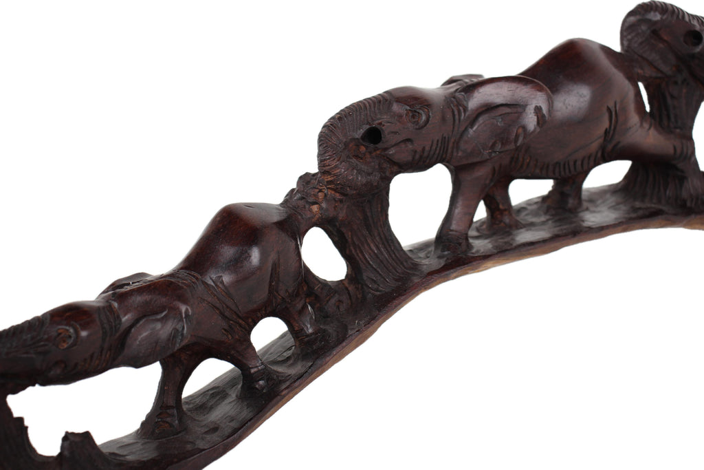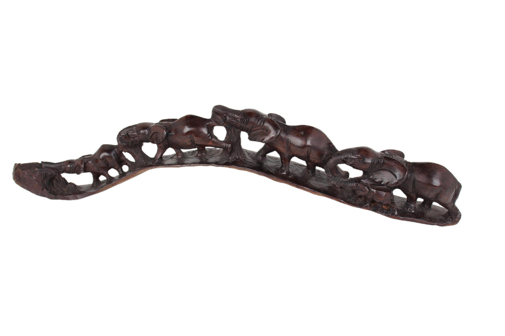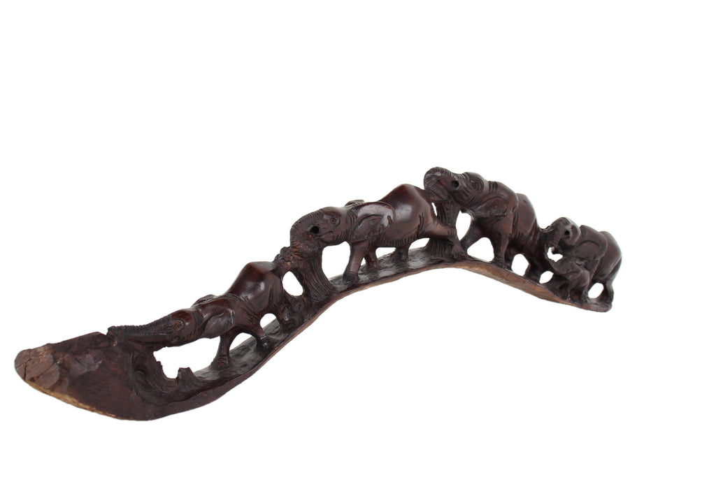 Chichewa Tribe Wooden Elephant Family – Malawi is known for its rich artistic traditions, including the creation of wooden sculptures. Malawian wooden animal sculptures are typically carved from various types of wood, such as ebony, mahogany, or jacaranda. Skilled artisans use traditional hand tools to carve the wood into the desired shape, paying attention to detail and capturing animals, such as elephants and other wild animals. The sculptures may showcase the natural beauty of the wood, with a smooth finish that highlights the grain and texture of the material. Some artists also choose to paint or stain the sculptures, adding color and enhancing the overall aesthetic appeal.