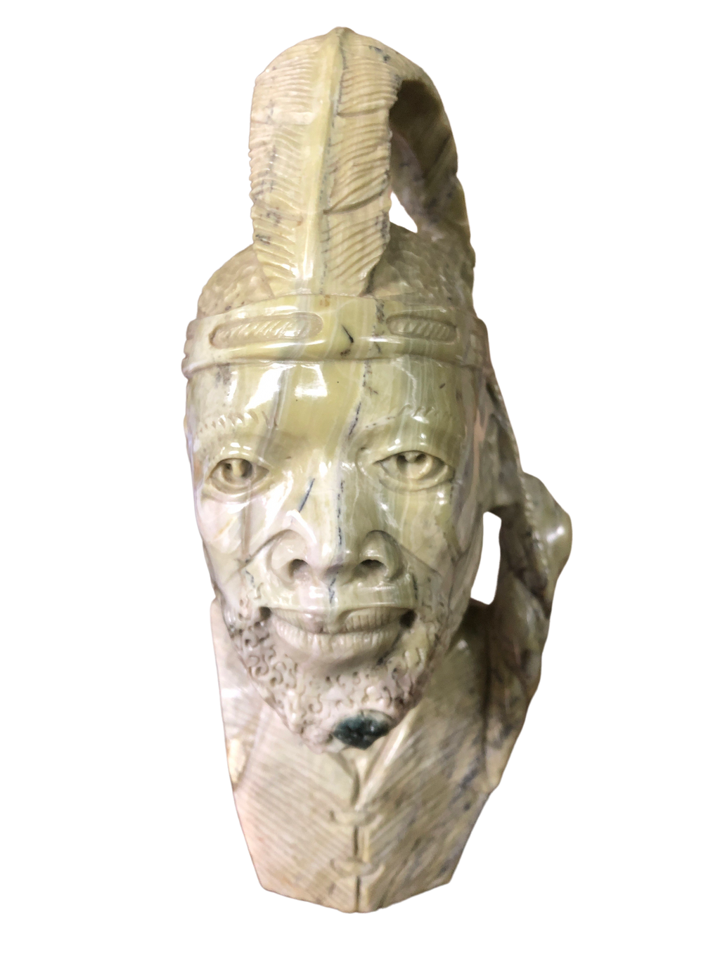 Shona Tribe Butter Jade Chief – A Shona artist sculpted a butter jade chief head into this one-of-a-kind stone sculpture. Zimbabwe is well-known for its stone sculpture all around the world. This expressive genre of art has exploded in popularity since 1980. Since it was first introduced in 1956 by Frank McEwen, then-Director of the National Gallery of Rhodesia, a lot of development has been accomplished. Despite the country's hardships, artistically gifted young artists have perfected the skill while simultaneously supporting their families by playing with stone and creating masterpieces.