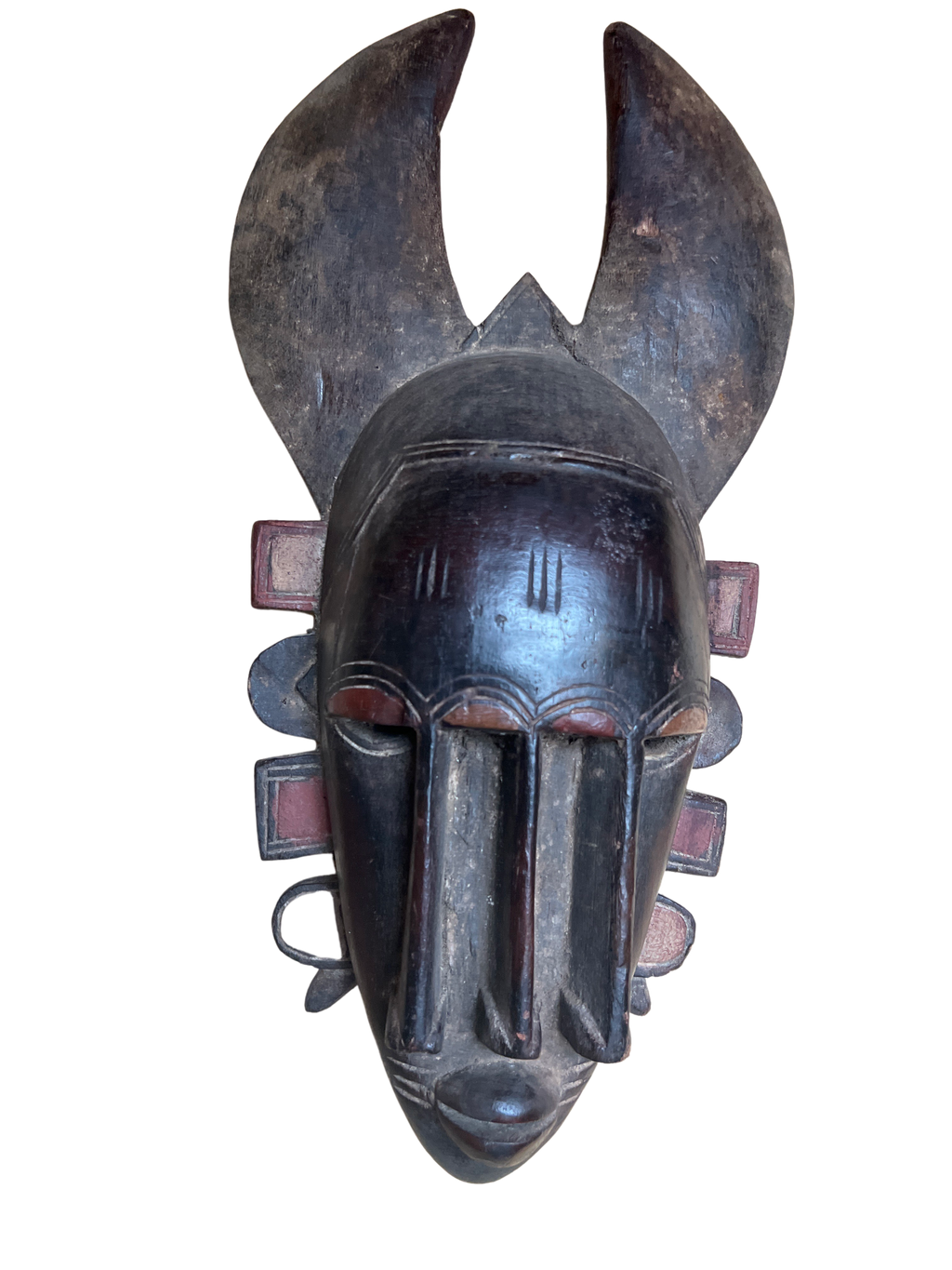 Senufo Tribe Twin Mask – Twin masks are a distinctive form of art within Senufo culture. These masks are characterized by their dual-faced design, representing the concept of twinship, which holds great importance in Senufo belief systems. The masks are typically carved from wood and feature two faces that are either identical or subtly different. Each face represents one twin, and together they embody the harmonious relationship between twins. The masks often display serene expressions, with almond-shaped eyes, elongated noses, and refined features. They are used in a variety of contexts, primarily associated with the Poro society, an institution that plays a central role in Senufo social, religious, and educational practices. The masks are utilized during Poro initiation ceremonies, which mark the transition of young boys into adulthood and the acquisition of knowledge and responsibilities.