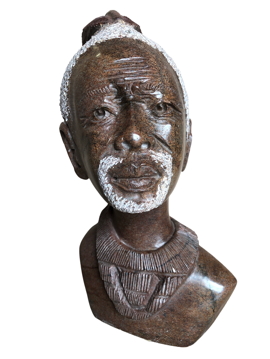 Shona Tribe Fruit Serpentine Chief – This bust sculpture of a Zulu Chief is hand carved in fruit serpentine stone by Zimbabwe's talented Shona artists. Zimbabwean artists are well-known for their stone carvings, and they are among the world's most skilled carvers. For nearly a thousand years, the Shona have been hand sculpting stone into works of art. Although the craft is ancient, the style has evolved over time, and the sculptures created today are both beautiful and elegant. The contemporary yet timeless shape of these sculptures adds opulence to the home and complements any décor.